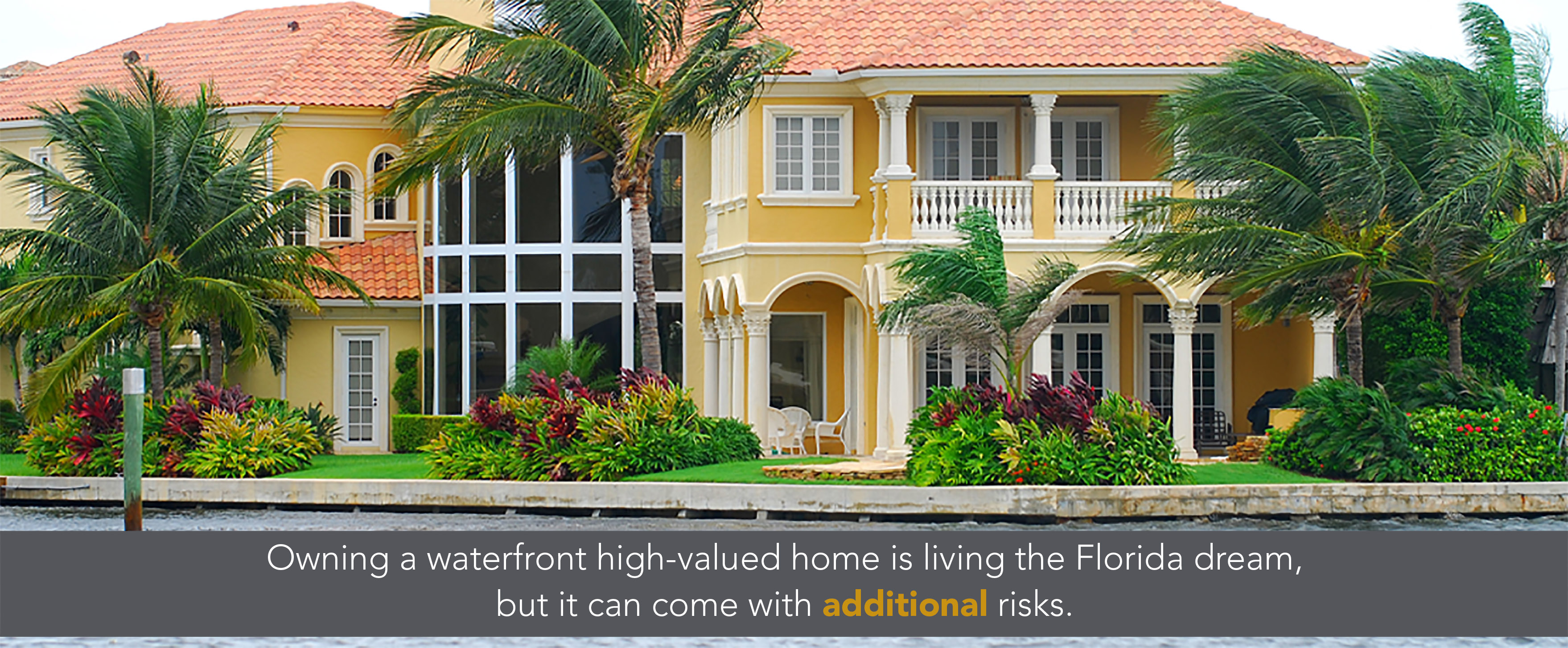 Waterfront high-valued homes are situated where they can bear the brunt of Florida’s extreme weather. Our state points directly into a volatile hurricane channel and even the most strongly-built home can suffer damage from severe weather. Does your homeowners insurance for expensive homes include adequate coverage for weather damage?